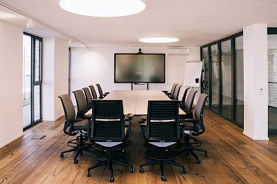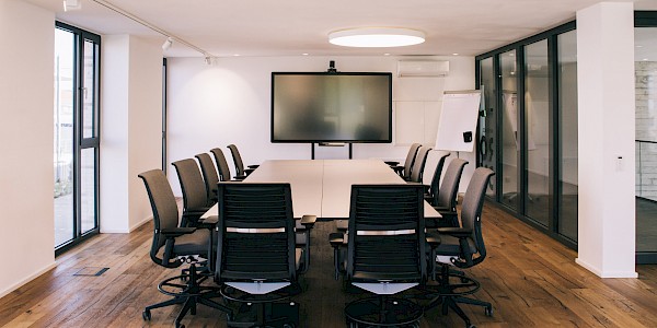 Unser Conference Room mit 12 Plätzen und einem Clevertouch Display eignet sich bestens für ihr nächstes Meeting.