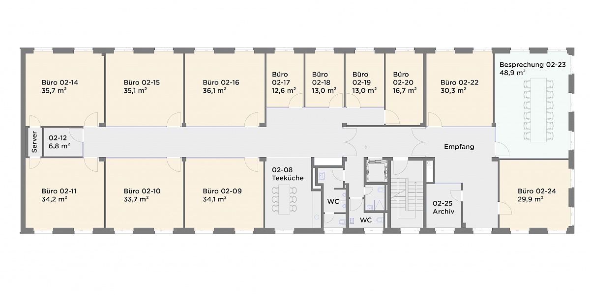 Die Büroflächen in unserem Gebäude stehen für einfache Struktur und modernes Arbeiten.